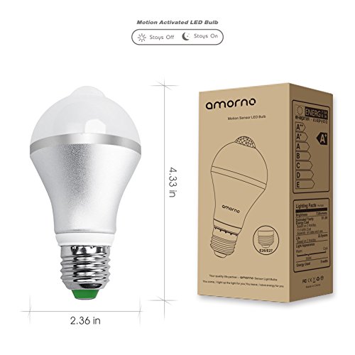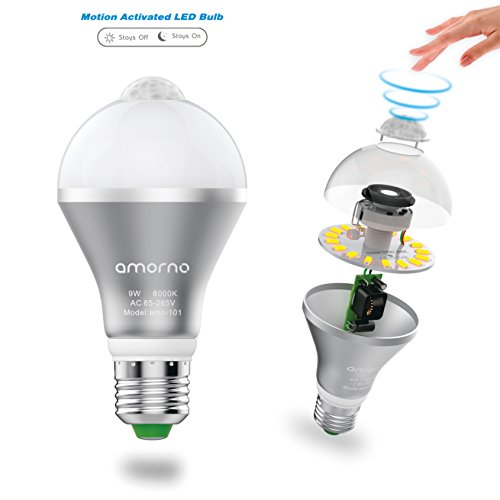 Motion Sensor Light Bulb,AMORNO 9W E26/E27 Smart PIR LED Light Bulb Auto on/off Night lights for Stairs,Garage,Corrido, Walkway,Yard ,Hallway,Patio, Carport (Cool White)