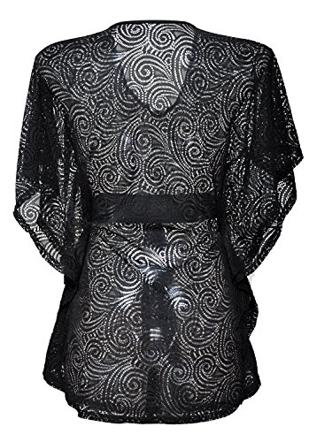 -. Feature : Pull On closure / Fabrication:90%Nylon 10%Spandex / The flowing, half-length sleeves and lightweight fabric help keep you cool and floral crocheted design keep you perfectly in style. / One size: Torso length - -31", across back+sleeve length - -32", waist - 34" / very stretch lace; waist at center front with self lace belt, you can keep it loose or tie bow by youself
