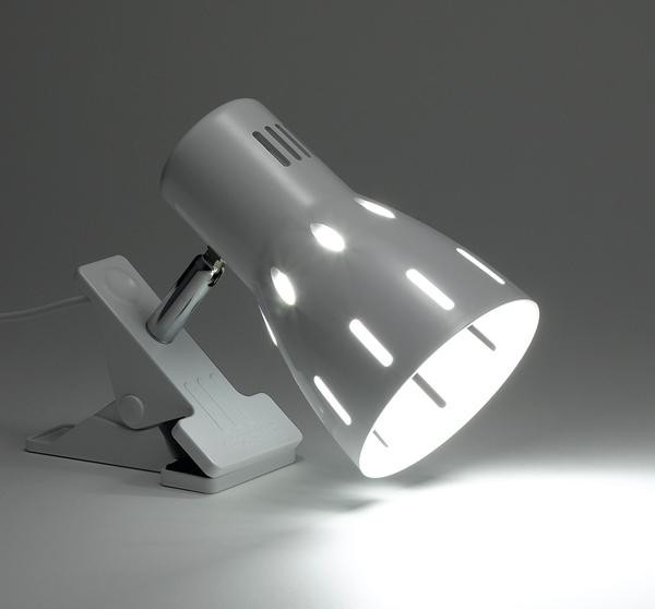 | セードとクリップ部分に軽く、強い素材を使用したクリップライト。アームを動かし、セードの向きを変えることができます。LED一体型の照明器具なので、購入後すぐに使用いただけます。 |