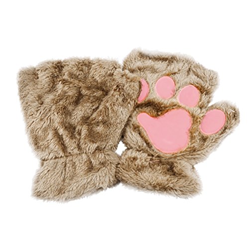 Package Including 1 x pair of Winter Women Cute Cat Claw Dog Paw Plush Mittens Short Fingerless Gloves Half Finger Gloves (Khaki) 0