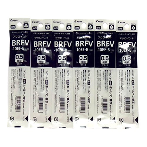 Pilot Acroball Ballpoint Pen Black Ink Refills, 0.5mm, BRFV-10EF-B, Set of 6 (Japan import)