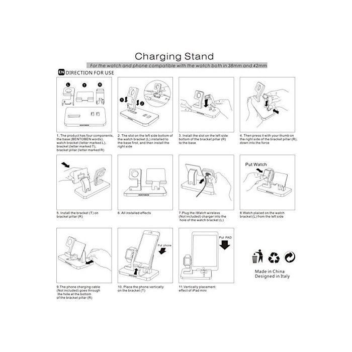 iPhone전기종과 Apple Watch충전 스탠드【BENTOBEN】스마트후충전 스탠드 2in1충전 스탠드 38mm / 42mm 대응 다기능 충전 스탠드