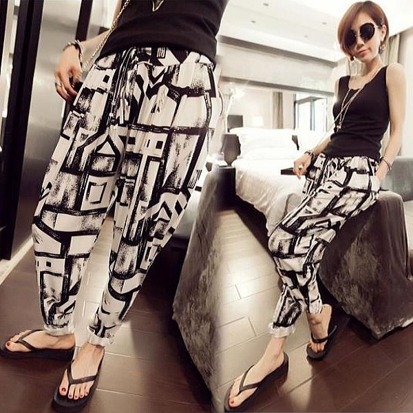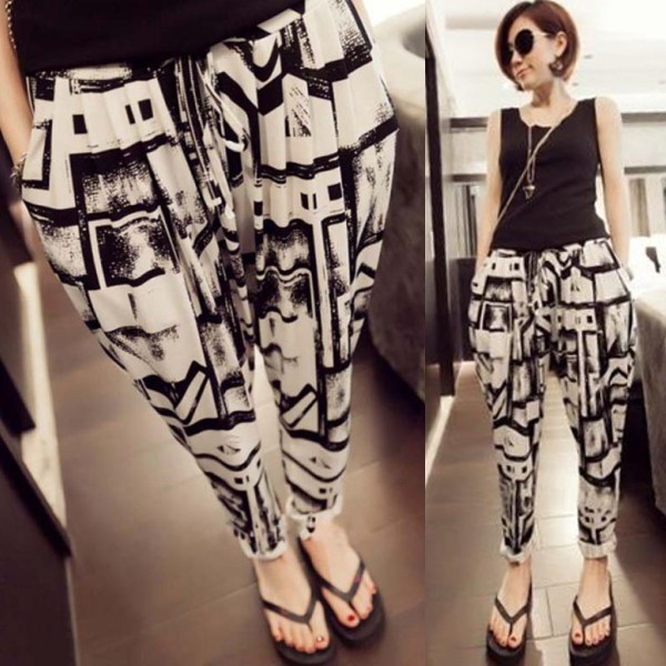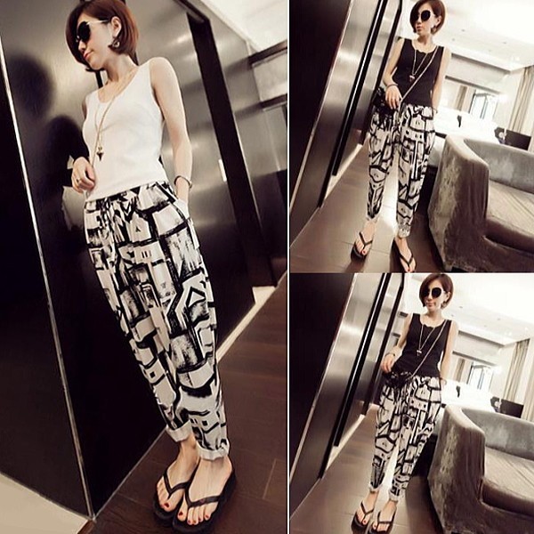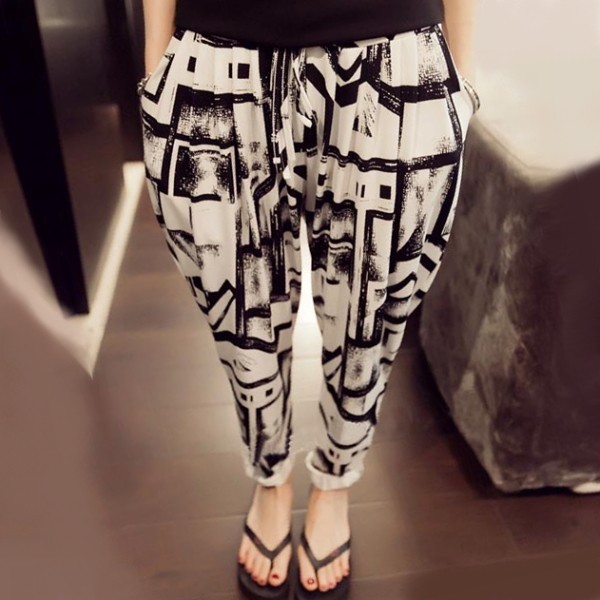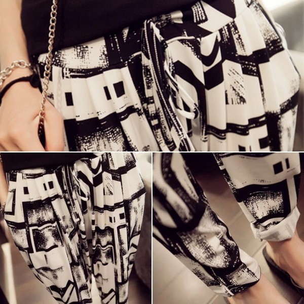 | 商品名 | 総柄 ボタニカル柄 幾何学柄 モノトーン サルエルパンツ ウエストゴム |