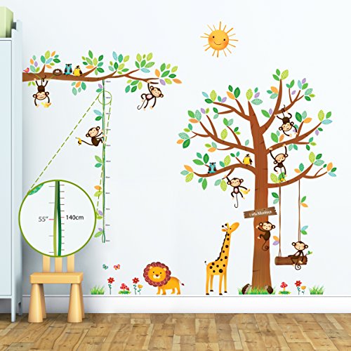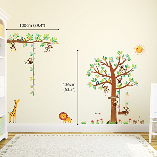 Decowall DM-1401P1402 8 Little Monkeys Tree and Height Chart Kids Wall Decals Wall Stickers Peel and Stick Removable Wall Stickers for Kids Nursery Bedroom Living Room