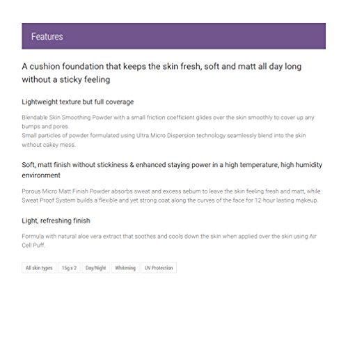 2016 New HERA UV MIST CUSHION LONG STAY MATT #21 Vanilla [0.53 Oz(15g) X 2]