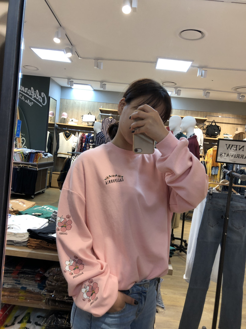 귀엽고 화사한 분위기를 연출하기 좋은 맨투맨입니다~