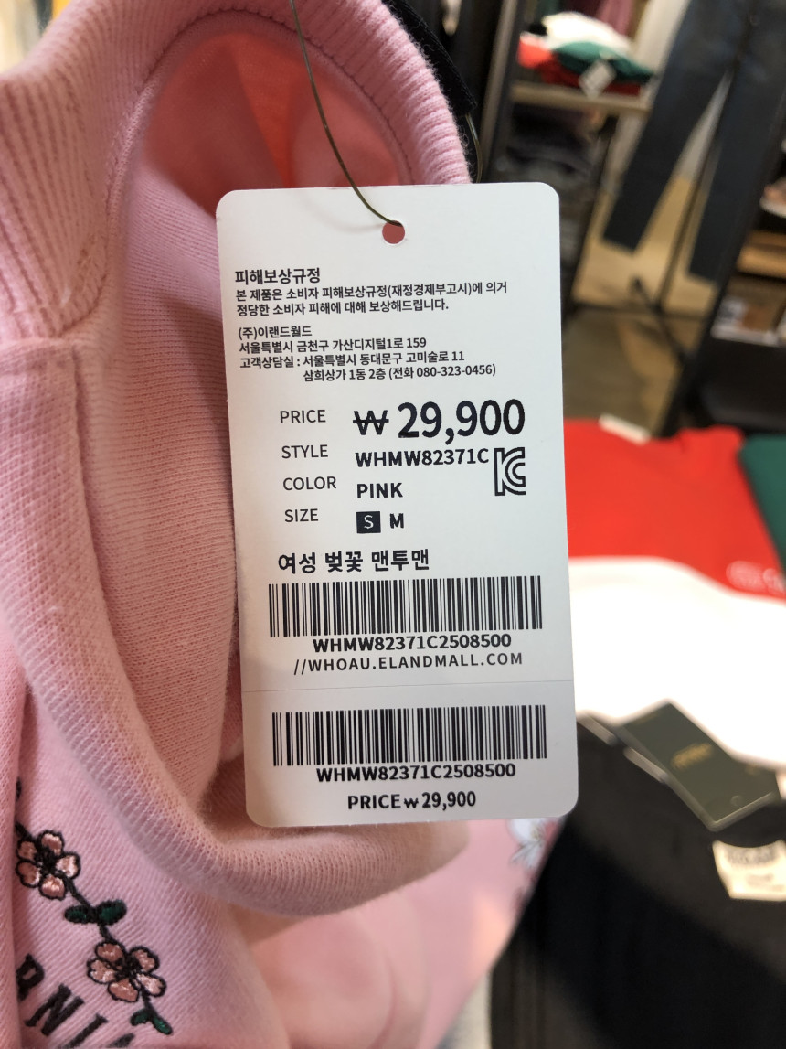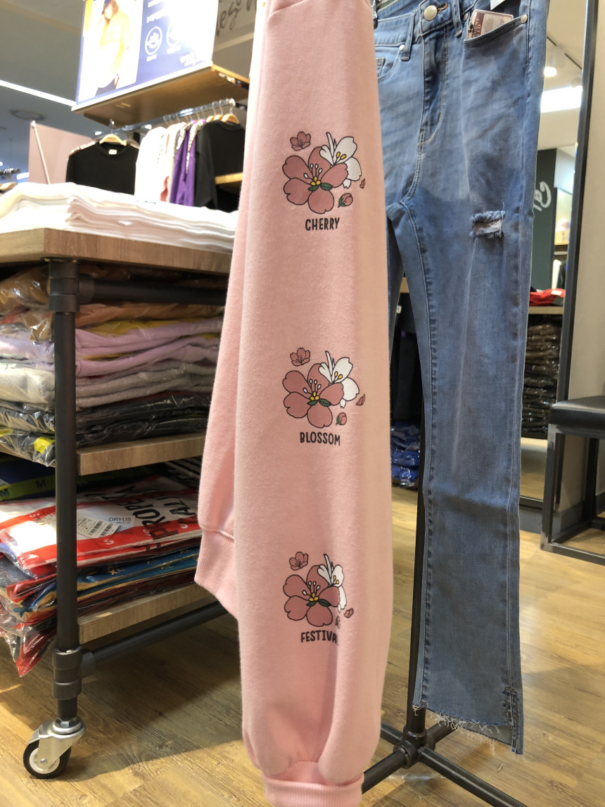 착용시 왼쪽 팔부분에는 벚꽃 프린트가 들어가