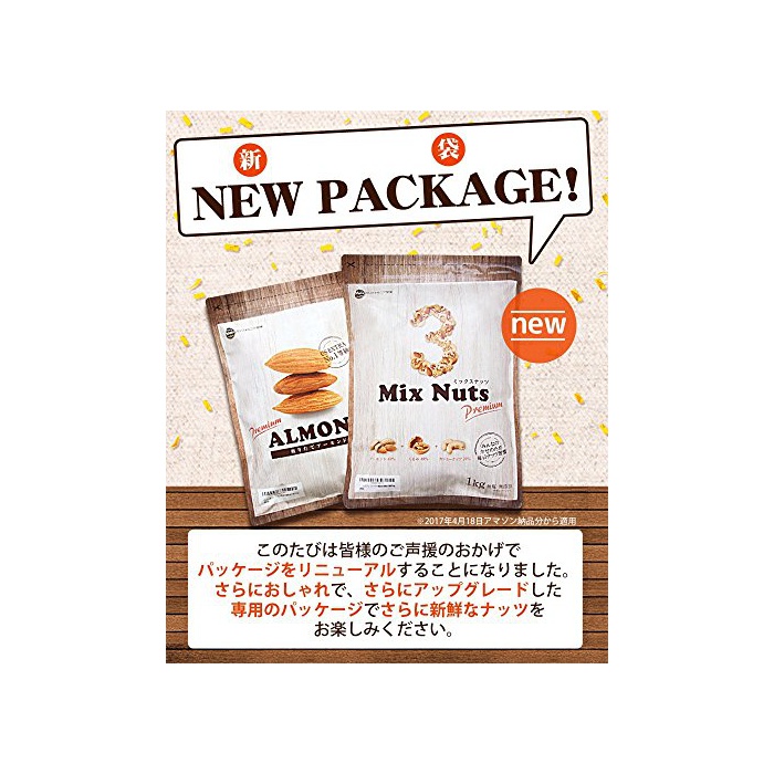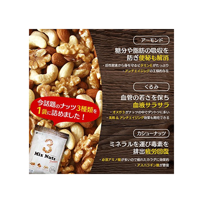 원본상품명: 3種プレミアムミックスナッツ1kg 産地直輸入 無 無添加 食物油不使用 (アモンド40% 生くるみ40% カシュナッツ20%)