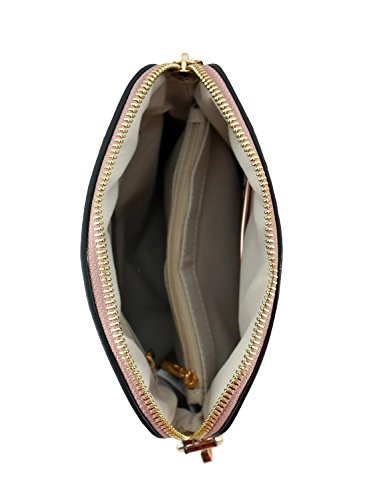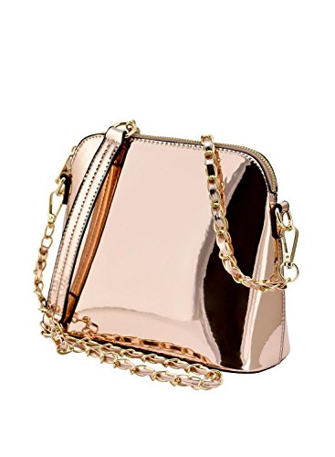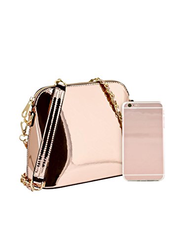 Product Description8.5"W x 7"H x 4"D (compare with phone 6S) 50 inch detachable straps Metallic faux patent leather Zipper main closure Interior zippered pocket Interior card slot Back zippered pocket Gold hardware Fully lined Imported0