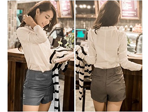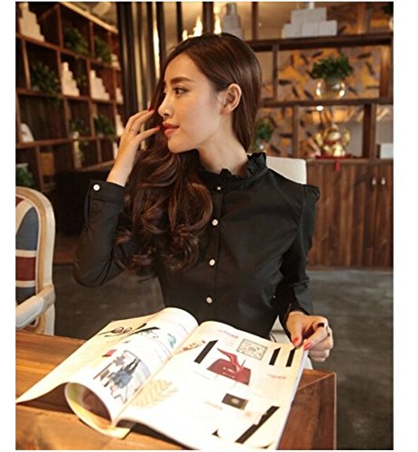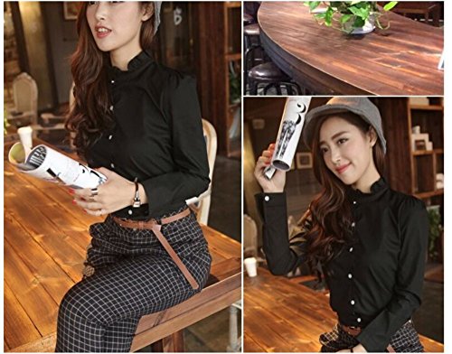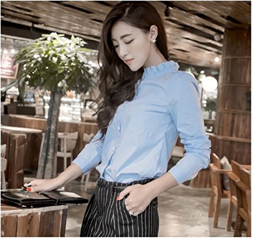 -. Feature : 清楚でシンプルなブラウスです。 スタンドカラーにフリルが可愛らしく上品です。 / スカート、パンツ、デニムなどボトムを選ばず、いろんなシーンで着用していただけます。 / オフィスはもちろん、お出かけやデートなどにもぴったりです。 / 素材:ポリエステル / サイズ S:肩幅33、胸囲85、腰囲70、丈58、袖丈59 M:肩幅34、胸囲88、腰囲70、丈59、袖丈60 L:肩幅35、胸囲92、腰囲74、丈60、袖丈61