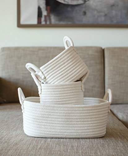★GRACEFUL HOME DECOR ACCENT - Beauty is really simple when you think about it. A humble spool of cotton rope turns into a beautiful basket with the simplest of sewing techniques. These gorgeous baskets with white tenderness will give a sense of stillness into your home. The texture and visual interest are attractive. Additionally, they are sturdy and durable.