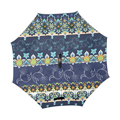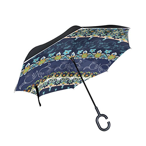 (AHOMY)/Accessories/Umbrellas/DIRECT FROM USA/AHOMY African Art Flower Large Double Layer Inverted Umbrella Windproof UV Protection With C-Sh...