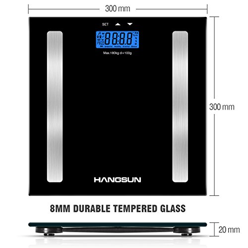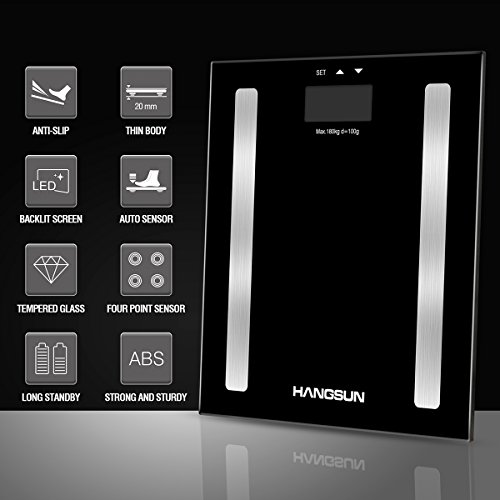 Hangsun Digital Bathroom Scale HS100 Weighing Scale Body Composition Analyser Measures Weight, Body Fat, Hydration, Muscle and Bone Mass with BMI...