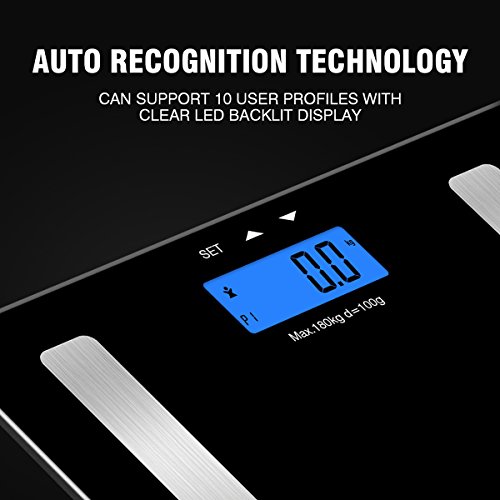 - 【Step On/off Technology】Large, readable LED backlight display, making results easy to read from any distance, or light condition. With smart weigh step-on/off technology so it never has to be switched on or off, resulting in better power saving and a long standby.