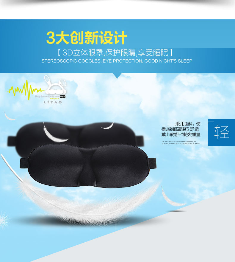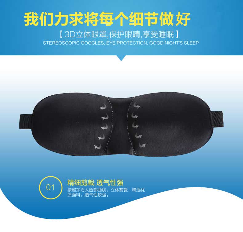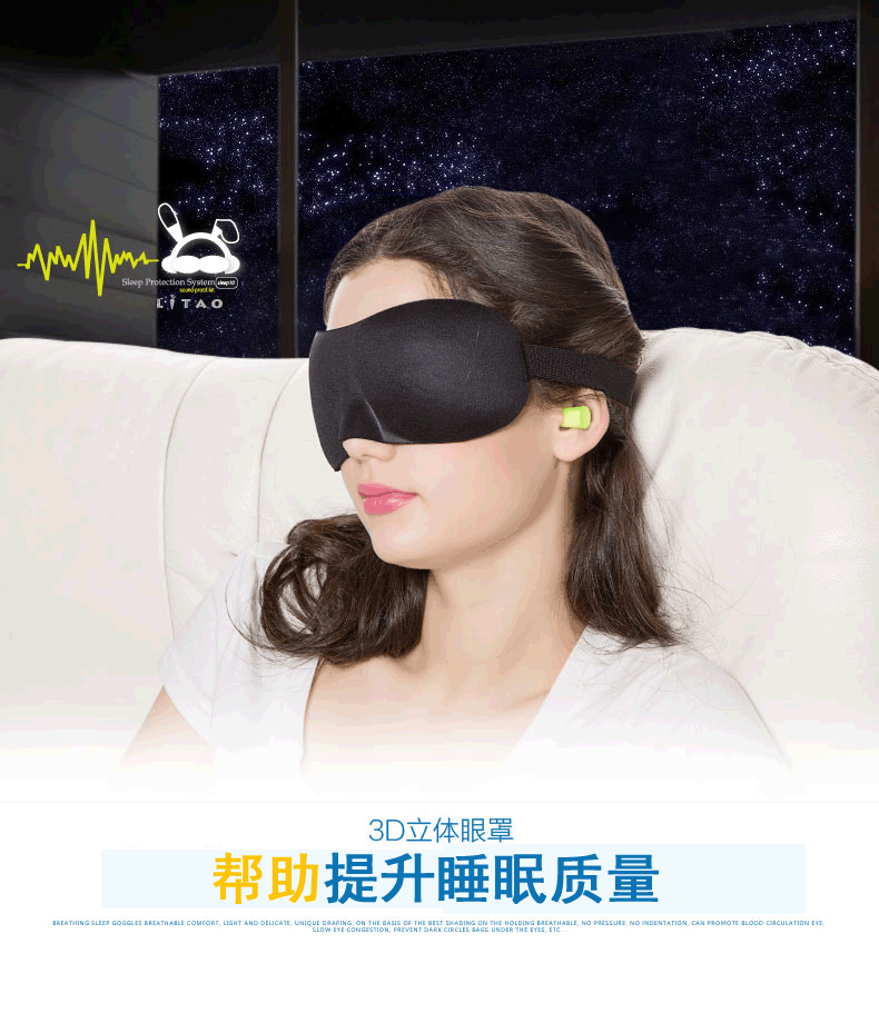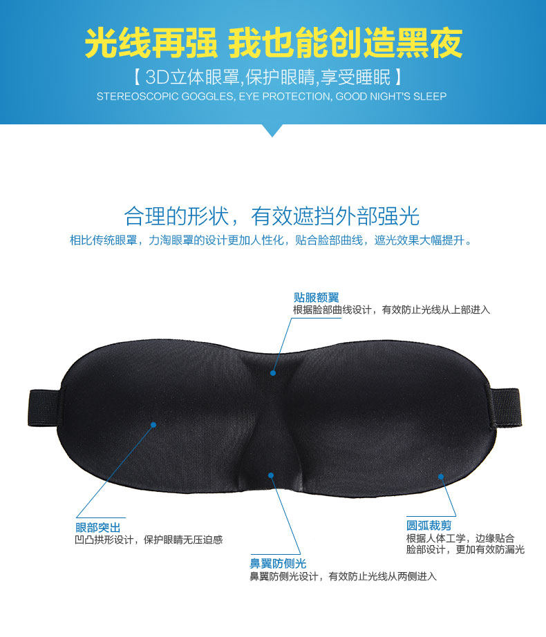 力淘3D立体眼罩睡眠护眼男女遮光透气睡觉旅行眼罩送耳塞包邮