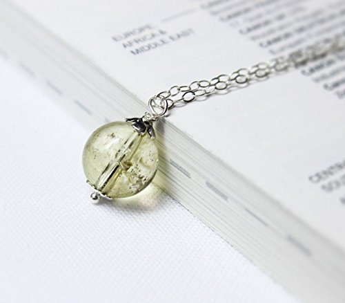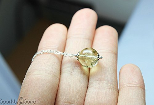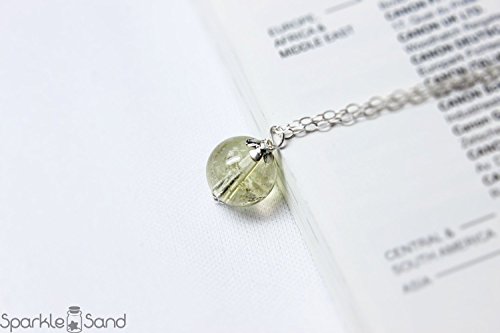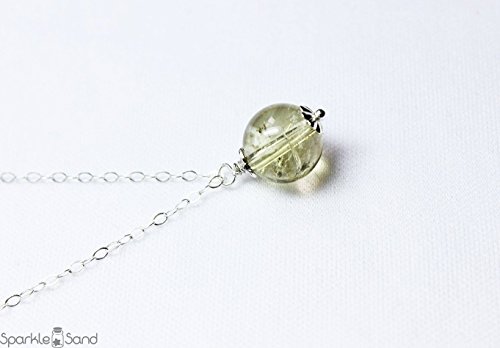 -. Title : quartz necklace, rutilated quartz sphere, gemstone bead pendant, crystal orb delicate round sterling silver, geometric jewelry, yellow green