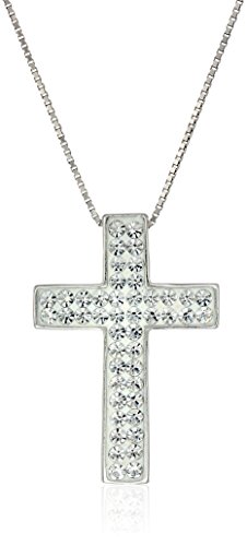 -. Title : Sterling Silver Clear Crystal Wide Cross Pendant Necklace, 18"