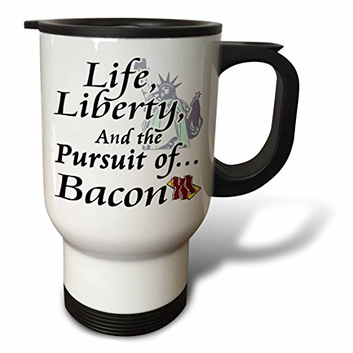 3dRose Funny Life Liberty and The Pursuit of Bacon, Food Humor, Stainless Steel Travel Mug, 14-Oz