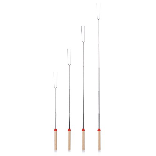 - 32inch Extendable Length For Safety - Telescoping skewers in 32 inch to keep children in a safe distance from any patio fire pit, backyard fire pit, bonfire pit, or campfire. Non-sharp prongs make them perfect for use around children.