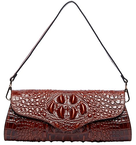 Pifuren Alligator Crocodile Embossed Genuine Leather Womens Clutch Purse M1113