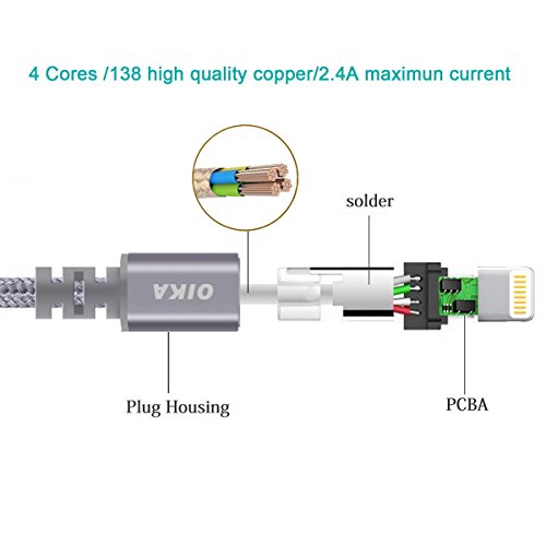 Nylon Fiber Cloth: The high quality nylon fiber cloth is wound tightly around the OIKA lightning cord to withstand day-to-day wear and tear whilst at the same time keeping it flexible and tangle-free.