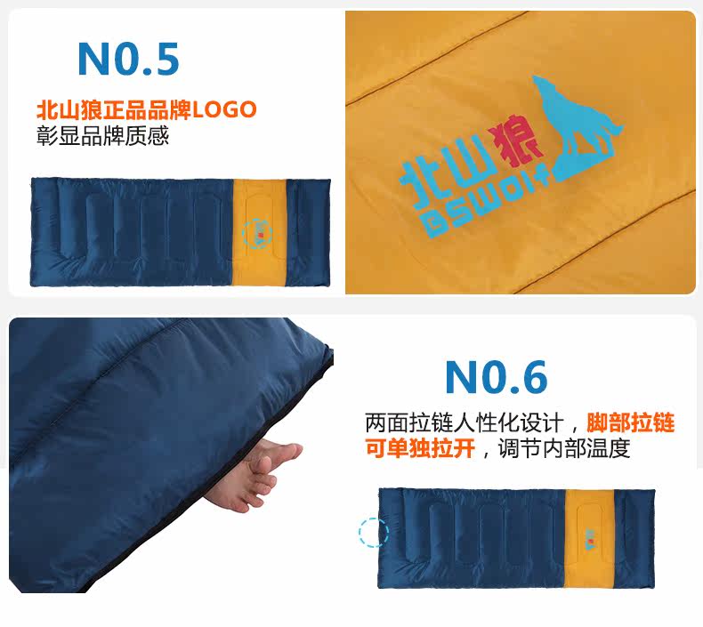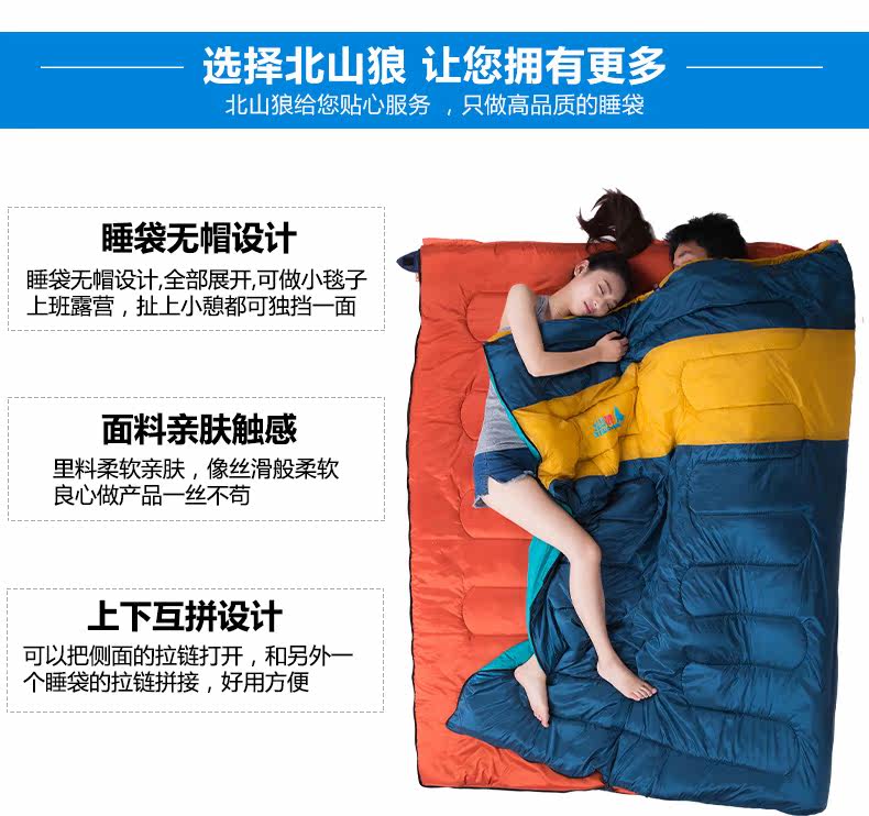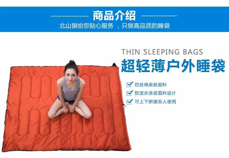 北山狼户外春夏轻薄睡袋野外露营豪华款多功能可拼接睡袋户外