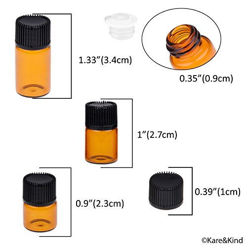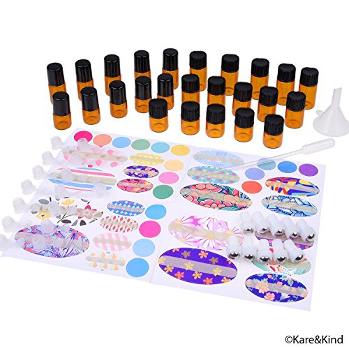 Kare & Kind Refillable Mini Essential Oil Bottle Kit - Includes: 25x Essential Oil Bottles, 15x Orifice Reducers, 10x Rolling Balls, 25x Caps, 39x Labels (4 Sizes), 1x Mini Droppers + 1x Mini Funnel