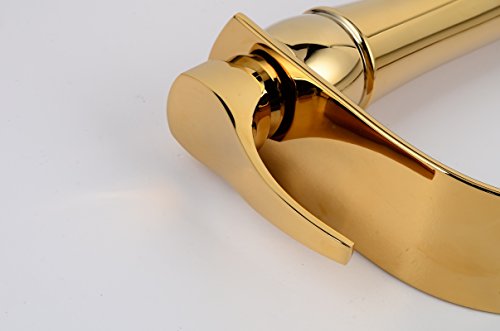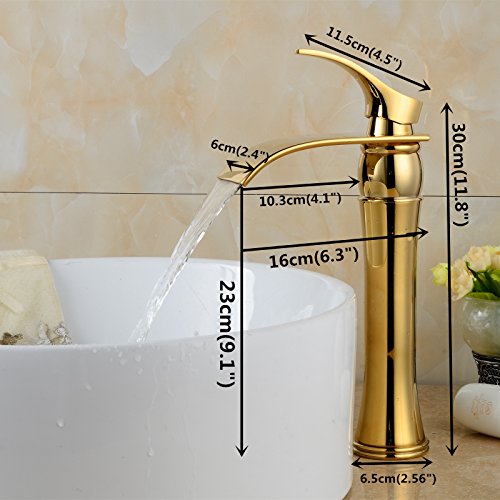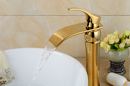 -. Title : Greenspring Waterfall Bathroom Sink Vessel Faucet Single Handle Basin Mixer Tap Gold Golden Finished