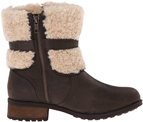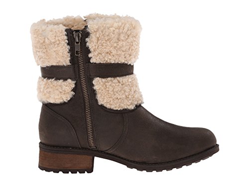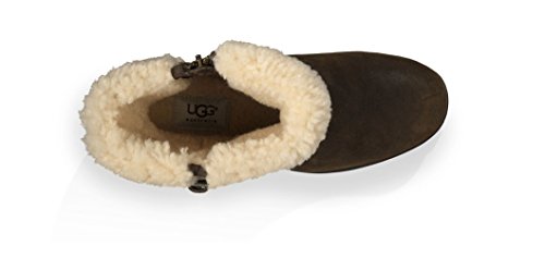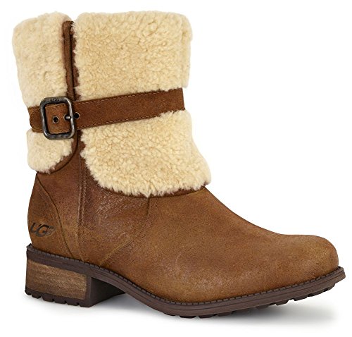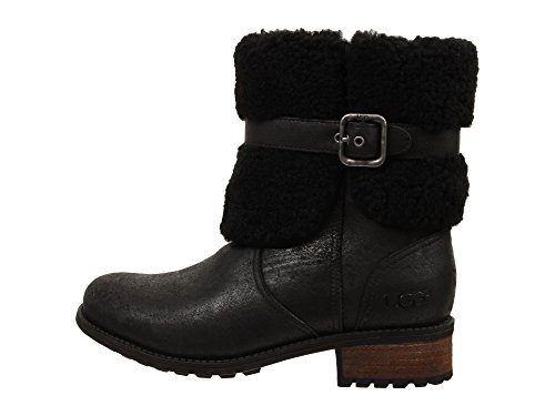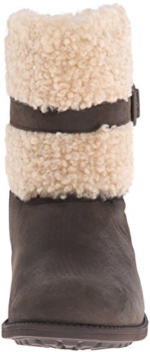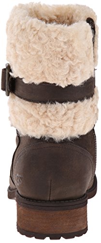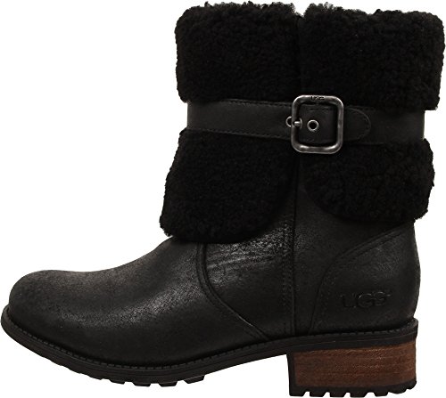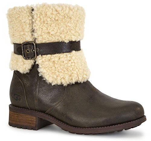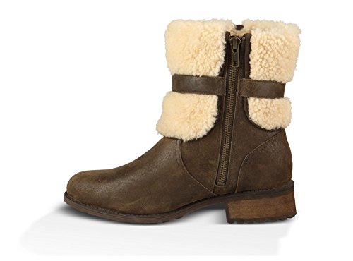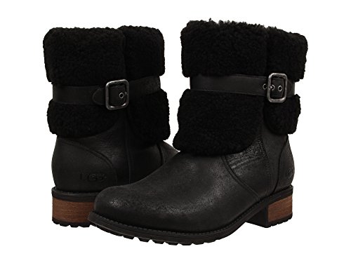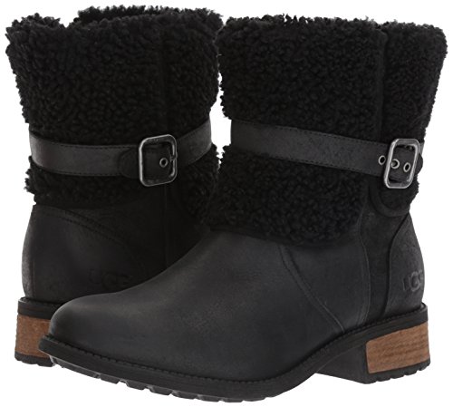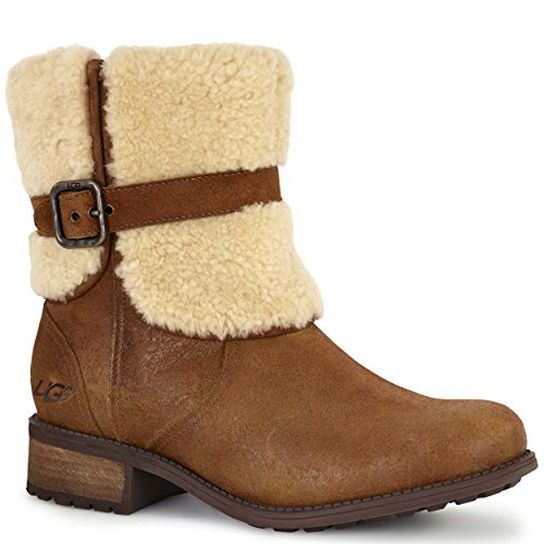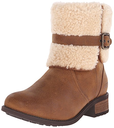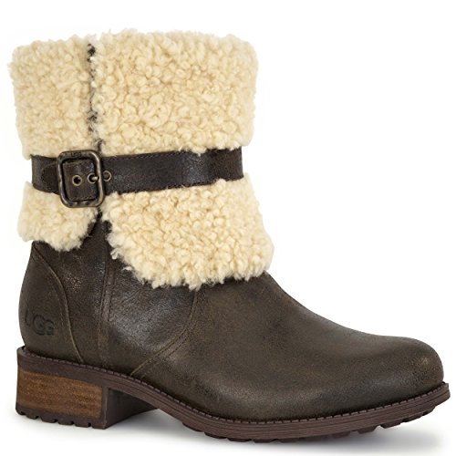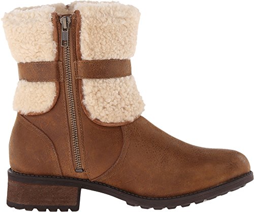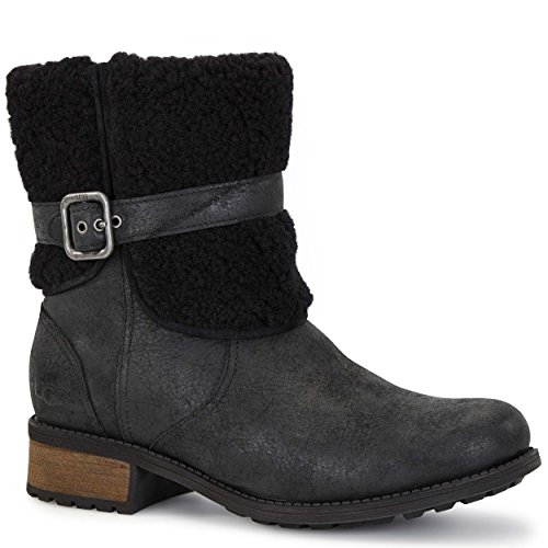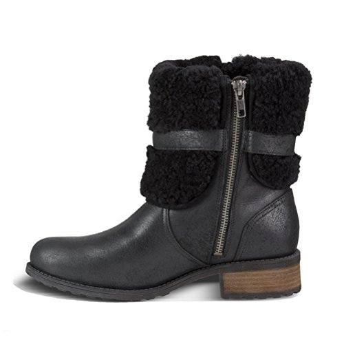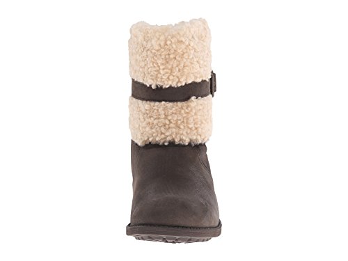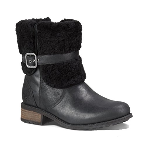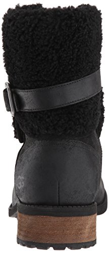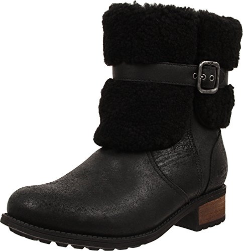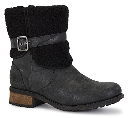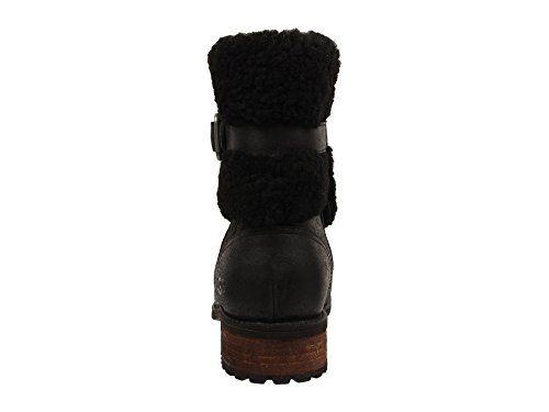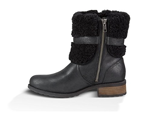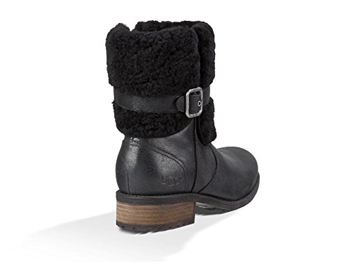 Product DescriptionWater resistant leather boot with exposed sheepskin cuff0