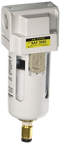 PneumaticPlus SAF3000M-N03BD Compressed Air Particulate Filter, 3/8" Pipe Size, NPT-Auto Drain, Poly Bowl, 10 μm