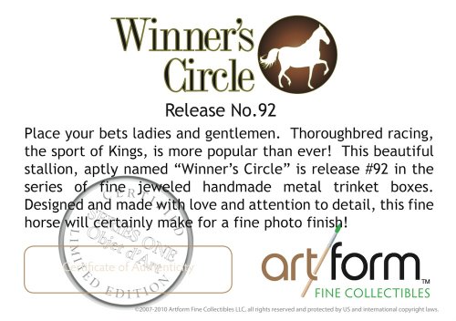 - Title : Objet D'Art Release #92 "Winner's Circle" Racing Horse Handmade Jeweled Metal & Enamel Trinket Box