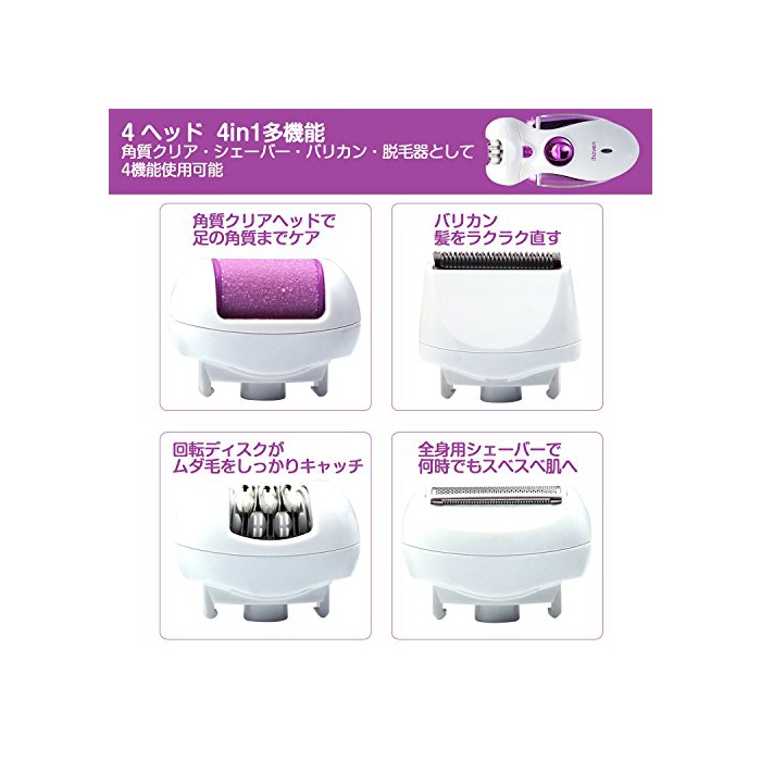 【4in1다기능】 각질 케어 산발 멀티 쉐이버등,탈모기 상부의 헤드를 교환 하는 것만으로 여러가지 기능을 쓸만한 멀티 쉐이버.전신 탈모,쓸모 없는 털 케어,발뒤꿈치 각질 케어,족탈모,등 쉐이버 등 안의 다기능 탈모기를 하나를 소유라면 일절 해결로 옵니다.보다 편리한 생활을 즐깁시다!