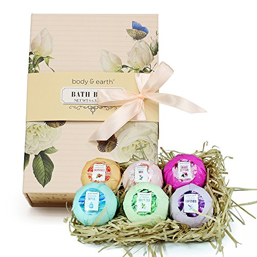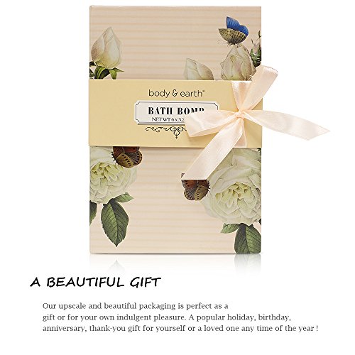 Bath Bombs Gift Set, Body & Earth 6pc Natural and Vegan Bath Fizzies, Infused with Essential Oils, Shea Butter and Coconut Oil, Best Gift Ideas for Women