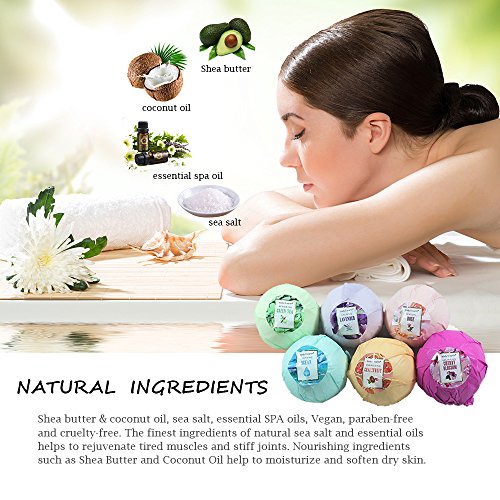 - LUXURY HOME SPA SET --Ultra moisturizing, soothe dry skin, Lasting effect, Relaxing your soul, Our invigorating explosion of scent and aromatherapy helps ease the mind, body and spirit. Treat yourself to a luxurious at-home spa with the bath bombs.