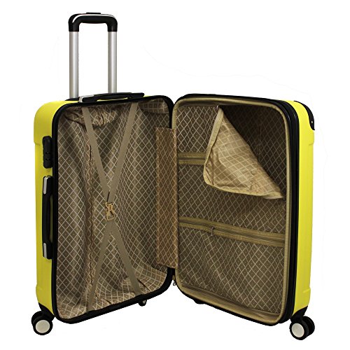 Product Description A perfect getaway deserves a perfect suitcase for your stuff, and we just found the best and fitting item for you with this all new bright solid geometric stripes suitcases. A must have. Set includes: 3 Suitcases, 20" carry-on measures 21"H x 13"W x 9"D and weighs 6.8 lbs, 24" upright measures 25"H x 16"W x 10"D and weighs 8.6 lbs, 28" upright measures 29"H x 19"W x 12"D and weighs 10.6 lbs Features: Expandable, Multi-Compartment, Spinner, Fashion, Hardshell, Hardsided and Durable | Materials: ABS 0