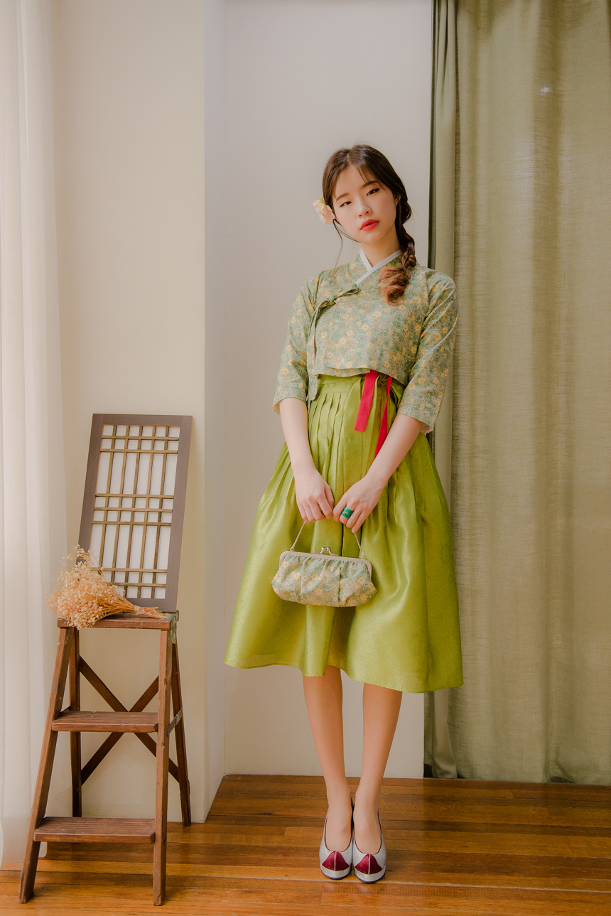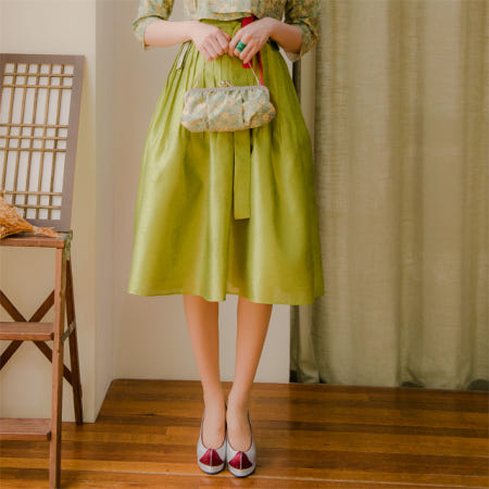 자수처럼 입체적인 문양이 표현되어 은은하게 고급스러운 한복 특유의 매력이 담겨있는 허리치마입니다.
