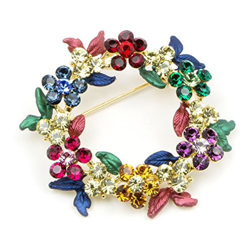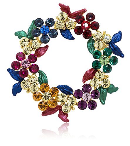 -. Title : Akianna Gold-tone Swarovski Element Crystals Wreath Pin Brooch Christmas Multicolor