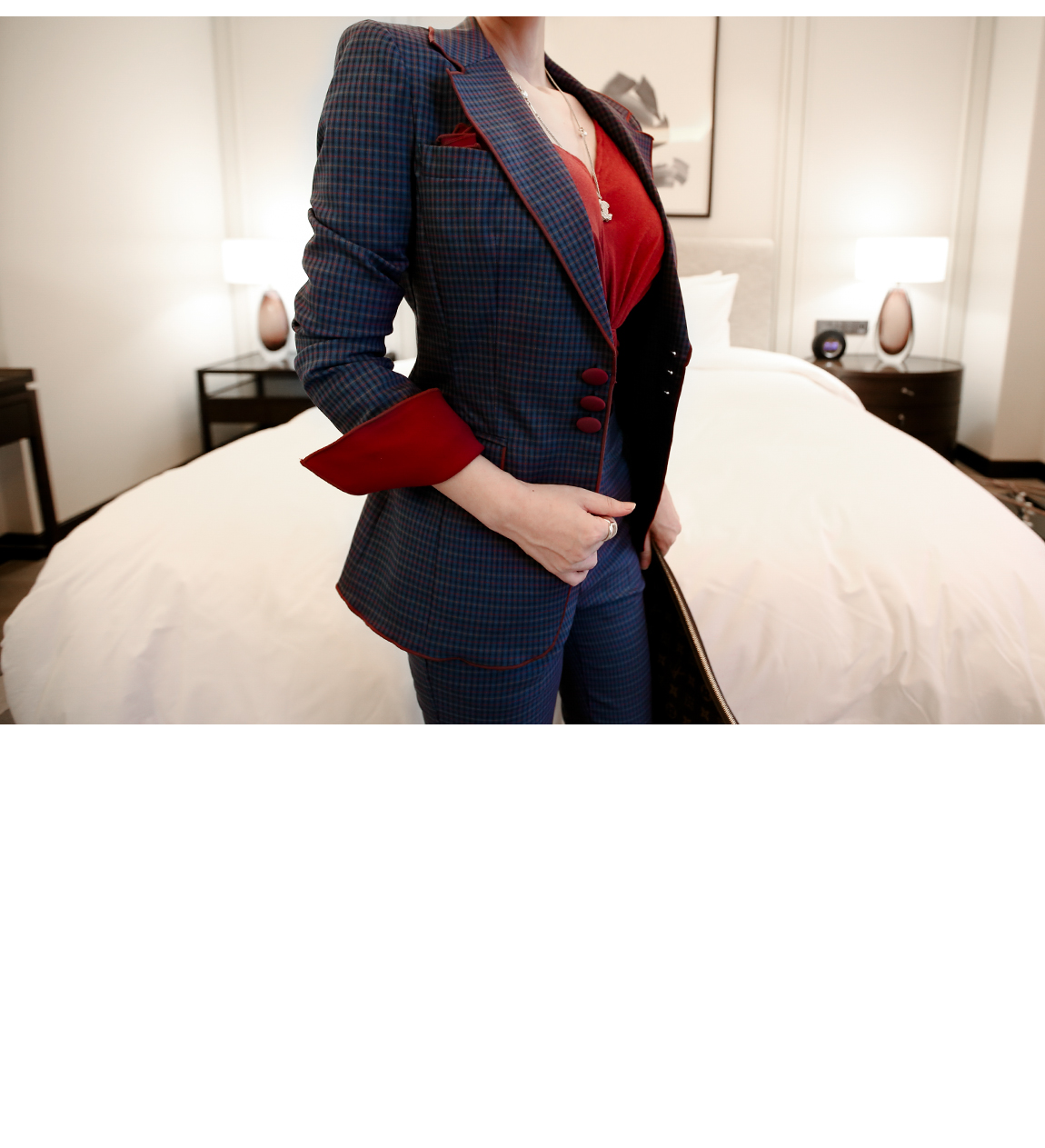 ショルダー・パッドが中心を握ってくれ、シルエットを整理してくれて