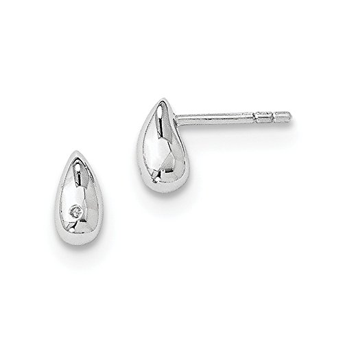 ICECARATS DESIGNER JEWELRY 925 STERLING SILVER .01CT. DIAMOND POST STUD BALL BUTTON STUD EARRINGS