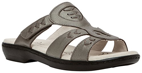 Women's Propet Jasmine Walking Shoes. Announcing the recipe for happy, ready - to - walk feet. Snappy design. Woven leather. Open toe. Just about every pair of feet would hit the road in delight under these conditions. Imagine your feet, sliding into great-looking leather Walking Sandals, then walking in the comfort of a leather lining and lightweight, breathable Ortholite insoles. And if your feet don't feel just right, you can adjust the hook and loop strap so they do. Made by Propet, designing shoes that are "solely" for walking. Walk a mile in these Sandals. (You could, with all they offer): Ortholite insole with microfiber sock lining; Comfortable, durable PU outsole; Supple leather upper with leather lining; Low-profile hook and look adjustable strap; Each shoe weighs approx. 6 ozs. State Color and Size. Get off your feet, and yours today! Women's Propet Jasmine Walking ShoesFeature