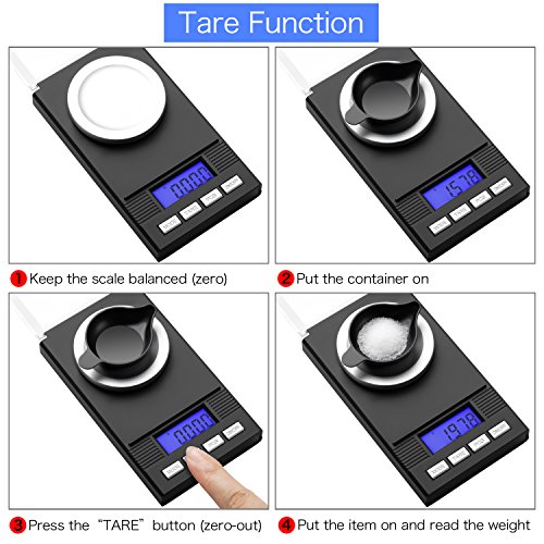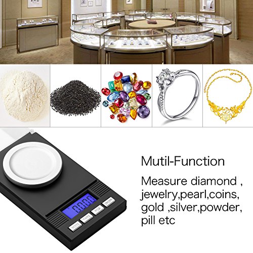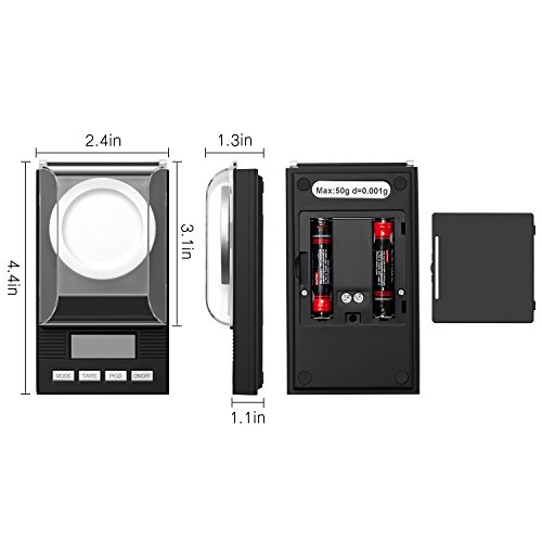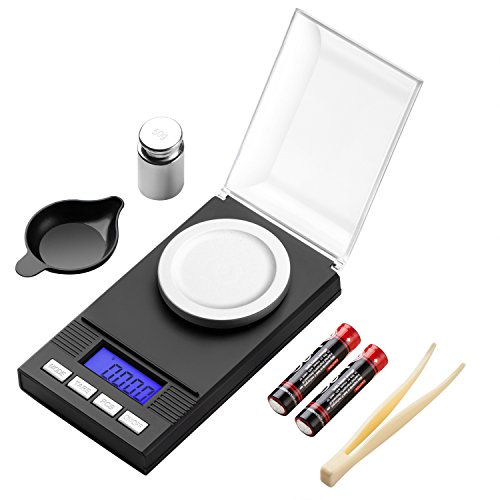 Zilink Digital Milligram Pocket Scale 50g / 0.001g Pro Jewelry Lab Carat Powder Scale With Back-lit LCD Display Auto Off Tare Function Batteries Included