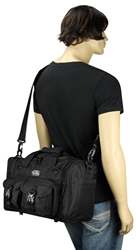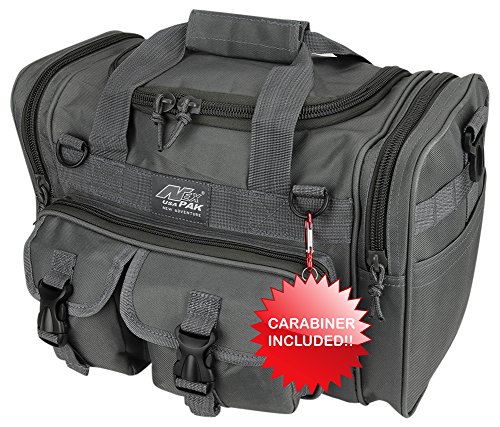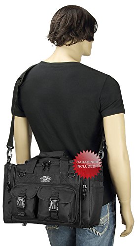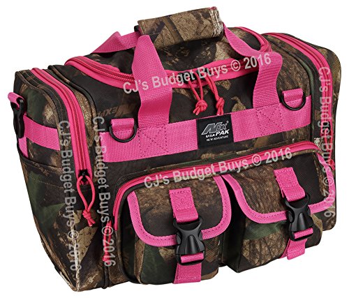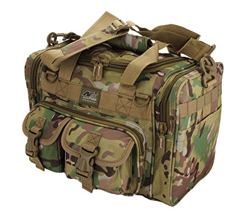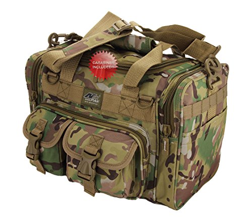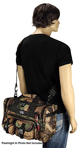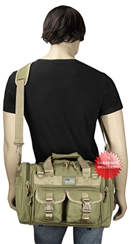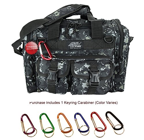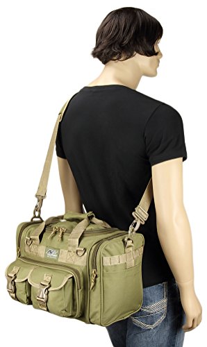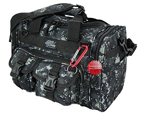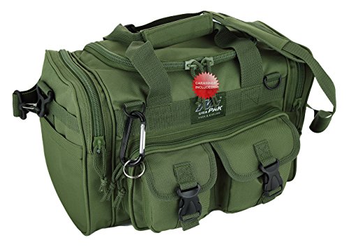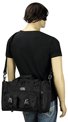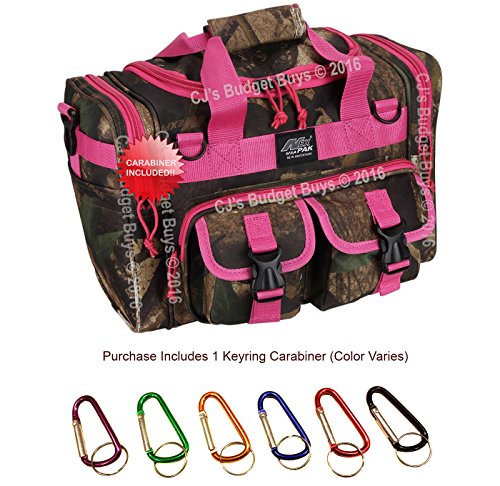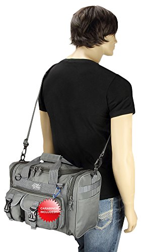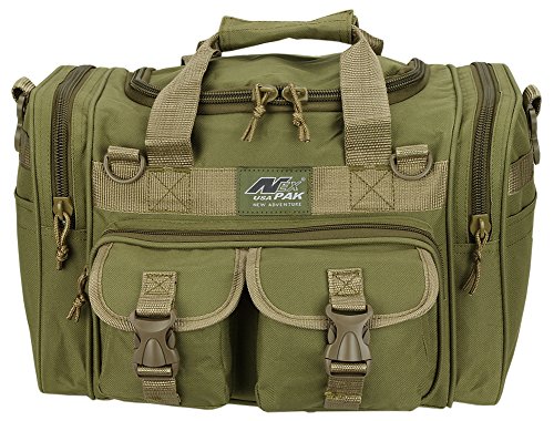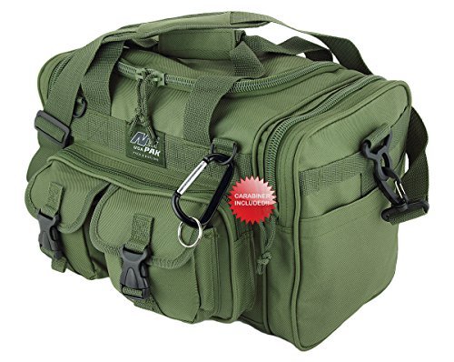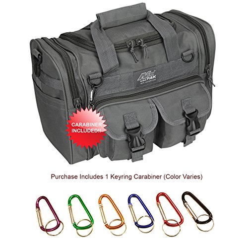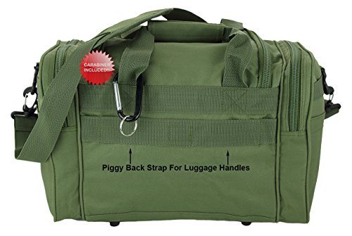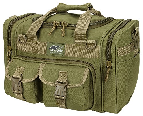 INCLUDED : Key ring with carabiner (color varies) This mens womens small duffel bag is ideal for military, tactical assault gear, cargo, hiking, camping, hunting, sports and gym, carry on, and more. It is constructed of high density polyester that provides durability and longevity under daily use. The pockets are lined with PVC that provide water repelling protection from the elements, so your gear stays dry in wet weather. Storage is a big advantage with this tactical duffle. It has 2 front adjustable buckle snap flap pockets (4.5L x 4W) (5L x 4W), and 1 long zippered front pocket (10L x 6) Both side panels consist of a large zippered pocket (10L x 9W), a velcro closing pocket (7.75L x 6.5W) and Molle strap system which allows attachments of military type tactical pouches and other accessories. The front also has 2 D rings for attaching accessories. The main compartment (12.5L x 9W x 8D) features a U-shaped dual zipper opening with PVC interior lining to protect your things from the elements such as water. Also comes with a PVC-lined floor board to stiffen the bottom side. Luggage Friendly Piggy-back rear strap for attaching on to luggage carts 2 carry handles have a velcro wrap-around strap to form one main handle for easier handling. Removable and adjustable shoulder strap comes with sliding shoulder pad and extends up to 43.5 inches which allows for your own perfect fit Dual zipper access on main compartment only. Available color options: Black, ACU Digital Camo, ACU Navy Digital Camo, Tan, OD Green, Gray, Hunters Camo, Hunters Camo Pink Get yours today while supplies last! 0 |
