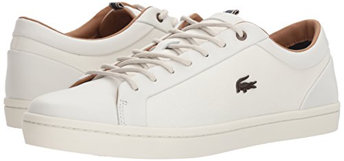 Product Description The Lacoste men’s Straightset sneaker is a minimalist style, showcasing clean lines, executed in luxurious crisp white nappa leather. Contrast linings and round wax laces finish this Lacoste staple with uninterrupted elegance. 0