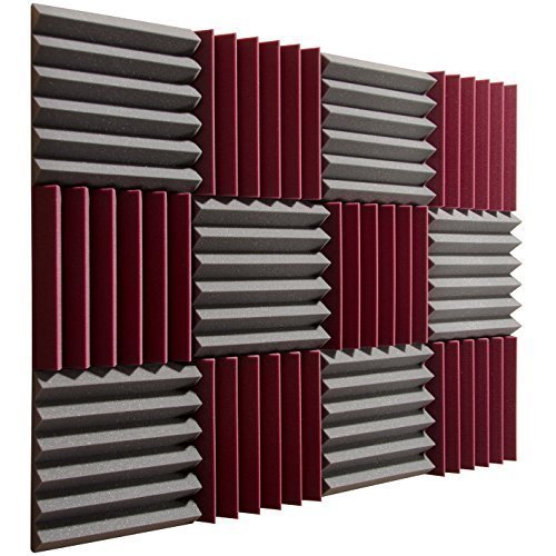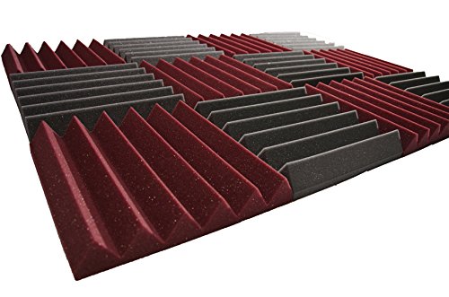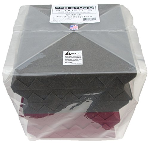Pro Studio Acoustics - 12"x12"x2" Acoustic Wedge Foam Absorption Soundproofing Tiles - Burgundy/Charcoal - 12 Pack