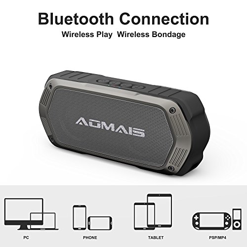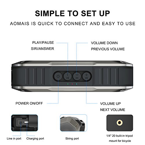 Crystal Clear Sound,Easy to Pairing:AOMAIS Tough wireless speaker have 10W full-range drivers and passive radiator delivers excellent stereo sound and with deep bass,less than 1% total harmonic distortion.Bluetooth V4.0 works with cell phone,iPad,iPod,Tablets,3.5mm audio jack allows wired connect with laptop,TV and other non-Bluetooth devices