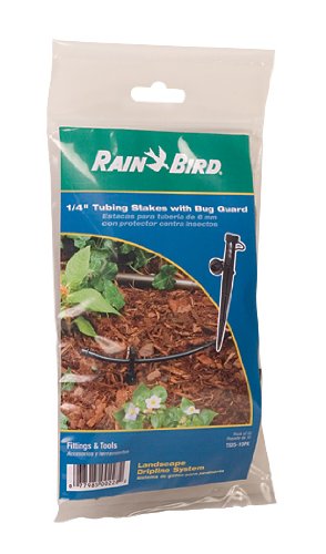 Rain Bird TS25/10PS Drip Irrigation 1/4" Tubing Stake with Bug Cap Diffuser and Locking Cap, 10-Pack