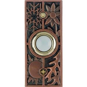Wired push button in seasonal design with lighted white push button. Solid brass escutcheon, flush mounted. 8 to 24V.