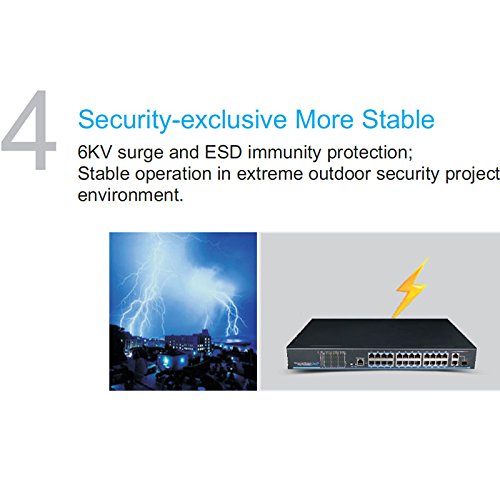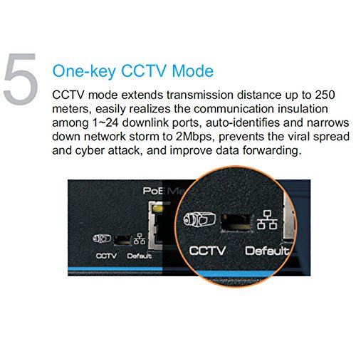Special Function One Key CCTV Mode: Support VLAN and restrain network storm;1~8 downlink ports can only communicate with uplink ports; the further transmission distance up to 250m in CCTV mode with the transmission speed rate 10Mbps. Protection:Superior lightning protection(6KV), ESD protection and anti-interference ability.