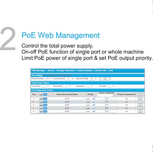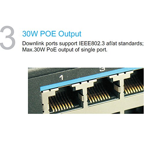 Total power:250W, 15.4 watts per PoE port (maximum 30W per port)