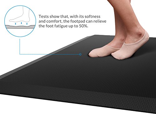 Fight Fatigue: Tired of standing for hours on end? Our anti-fatigue floor mats effectively relieve pressure on your knees, feet and joints, easing pain and boosting comfort! With a soft yet supportive surface, you can work standing as long as you need without soreness.
